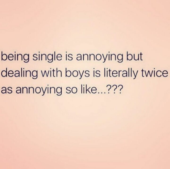 “Being single is annoying but dealing with boys is literally twice as annoying so like…???”