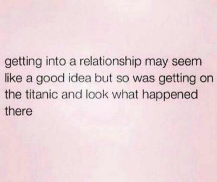 “Getting into a relationship may seem like a good idea but so was getting on the Titanic and look what happened there.