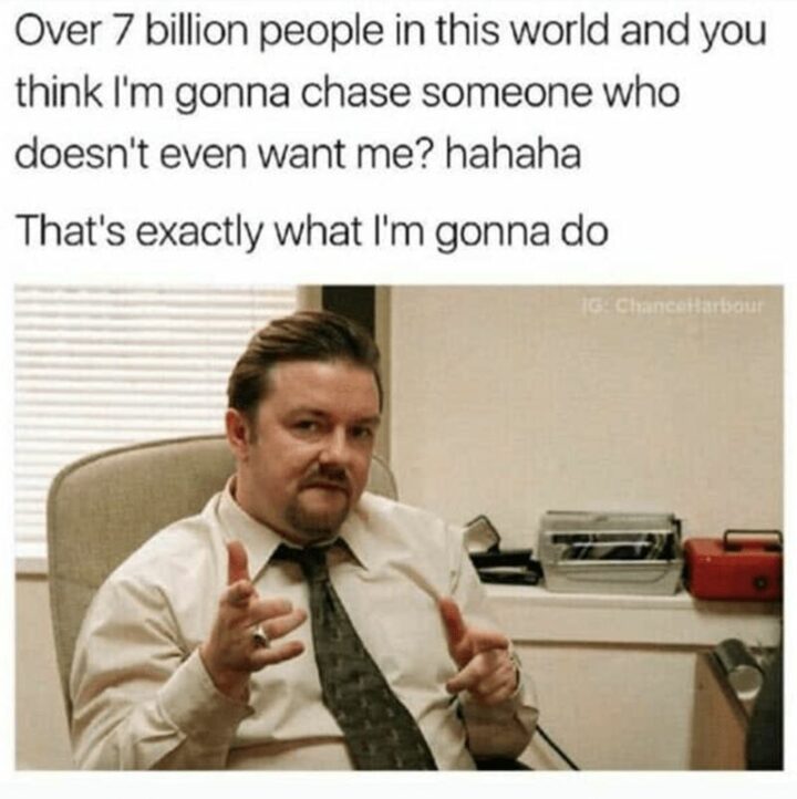 “Over 7 billion people in this world and you think I’m gonna chase someone who doesn’t even want me? Hahaha. That’s exactly what I’m gonna do.”