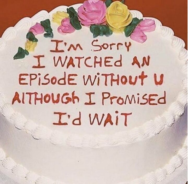 “I’m sorry I watched an episode without u although I promised I’d wait.”
