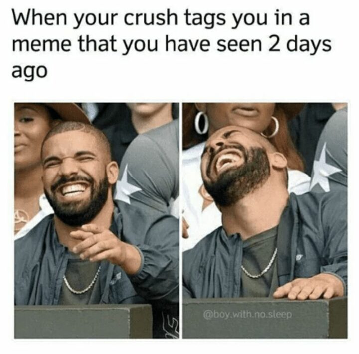 “When your crush tags you in a meme that you have seen 2 days ago.”