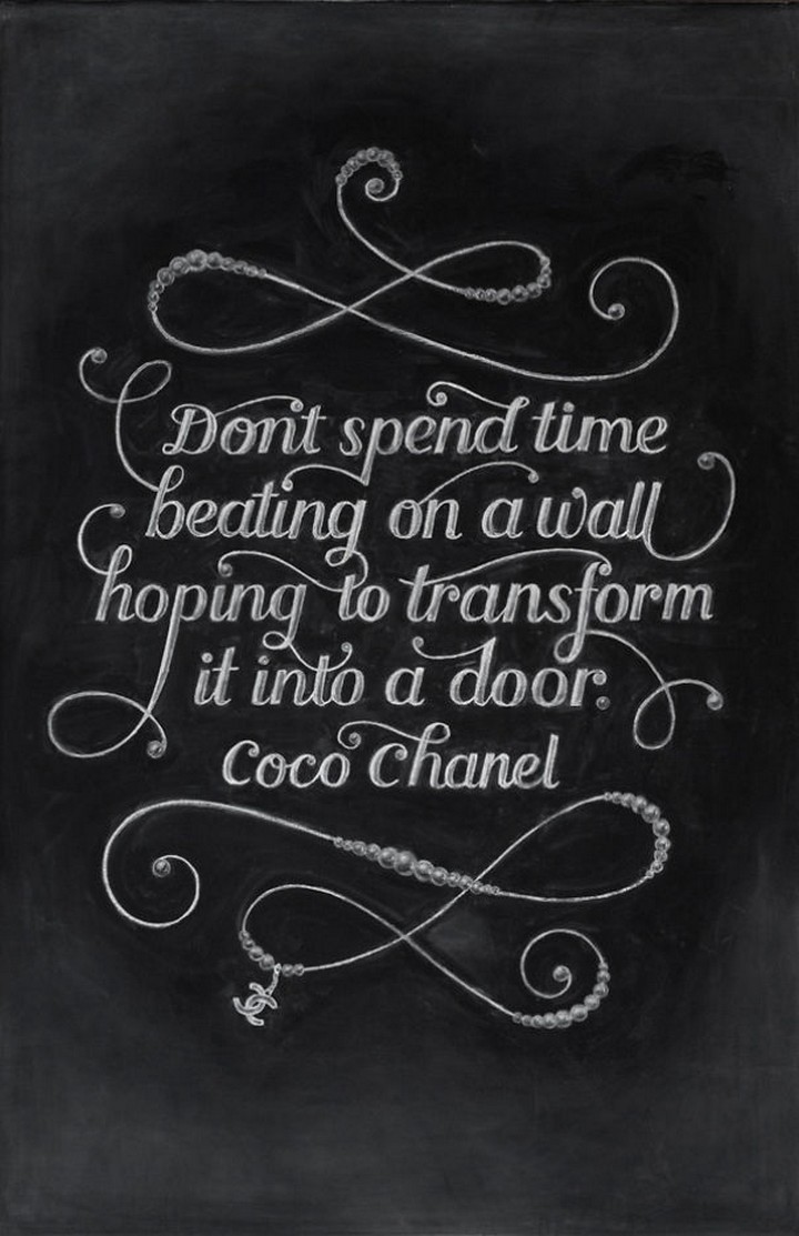 “Don’t spend time beating on a wall hoping to transform it into a door.” – Coco Chanel