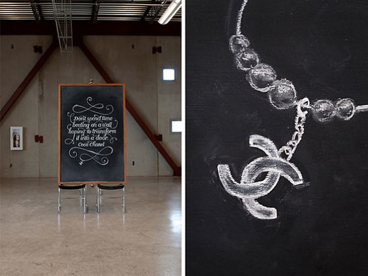 Then, they complete their masterpiece using only a chalk and blackboard as the canvas.