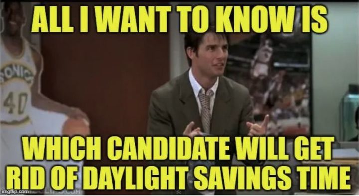 “All I want to know is which candidate will get rid of daylight savings time.”