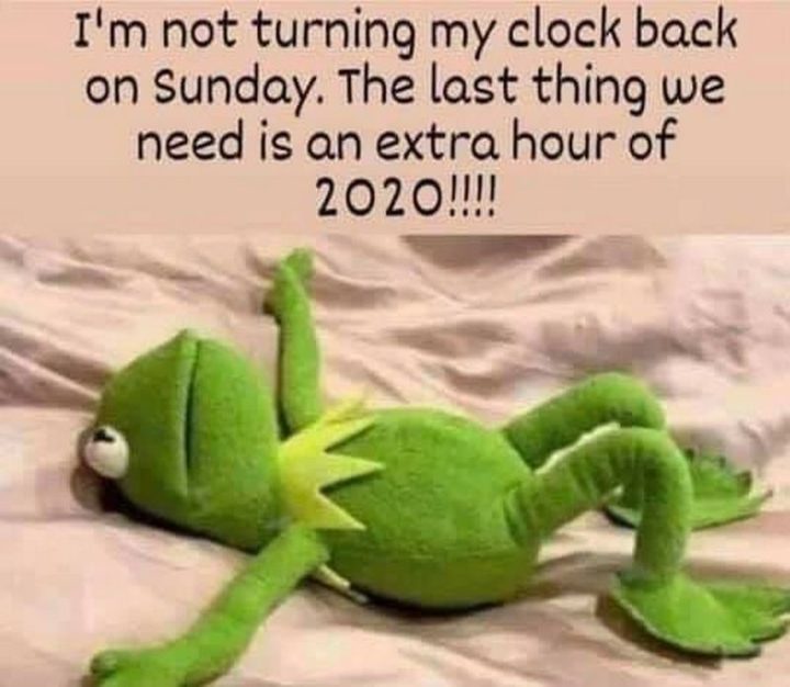 “I’m not turning my clock back on Sunday. The last thing we need is an extra hour of 2020!!!!”