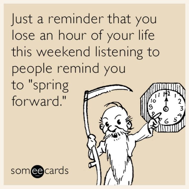 “Just a reminder that you lose an hour of your life this weekend listening to people remind you to ‘spring forward’.”
