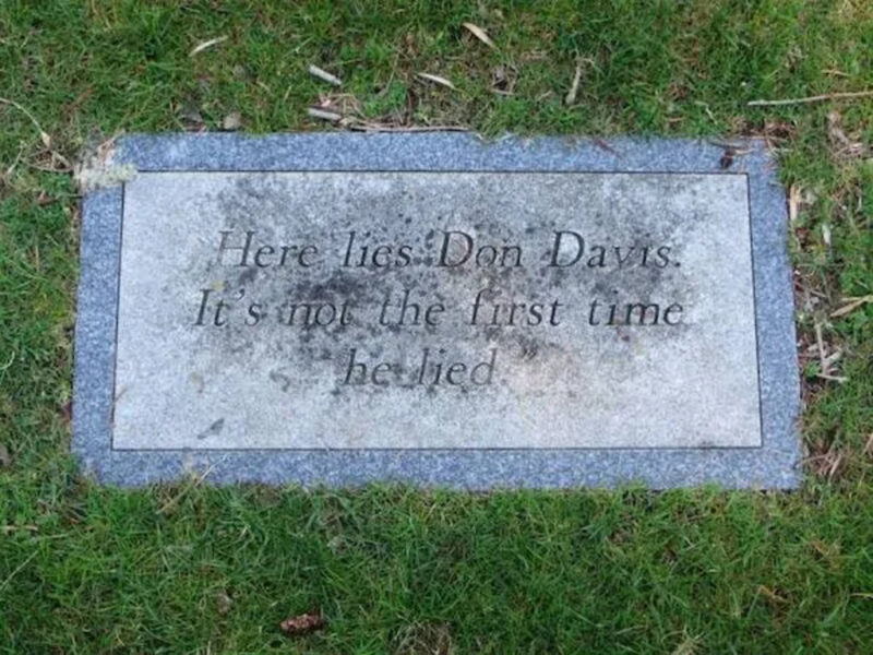 “Here lies Don Davis. It’s not the first time he lied.”