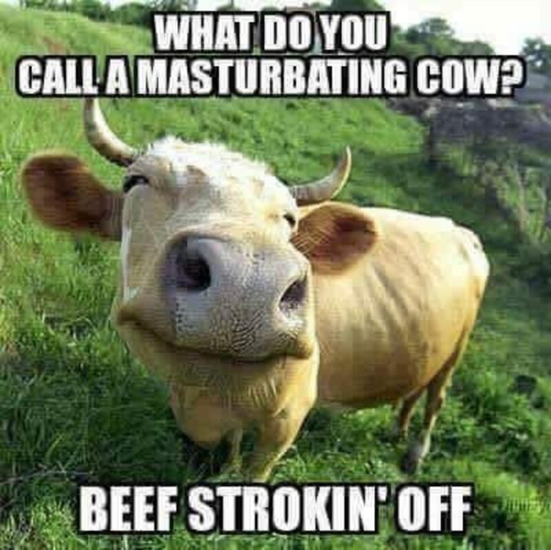 “What do you call a masturbating cow? Beef strokin’ off.”