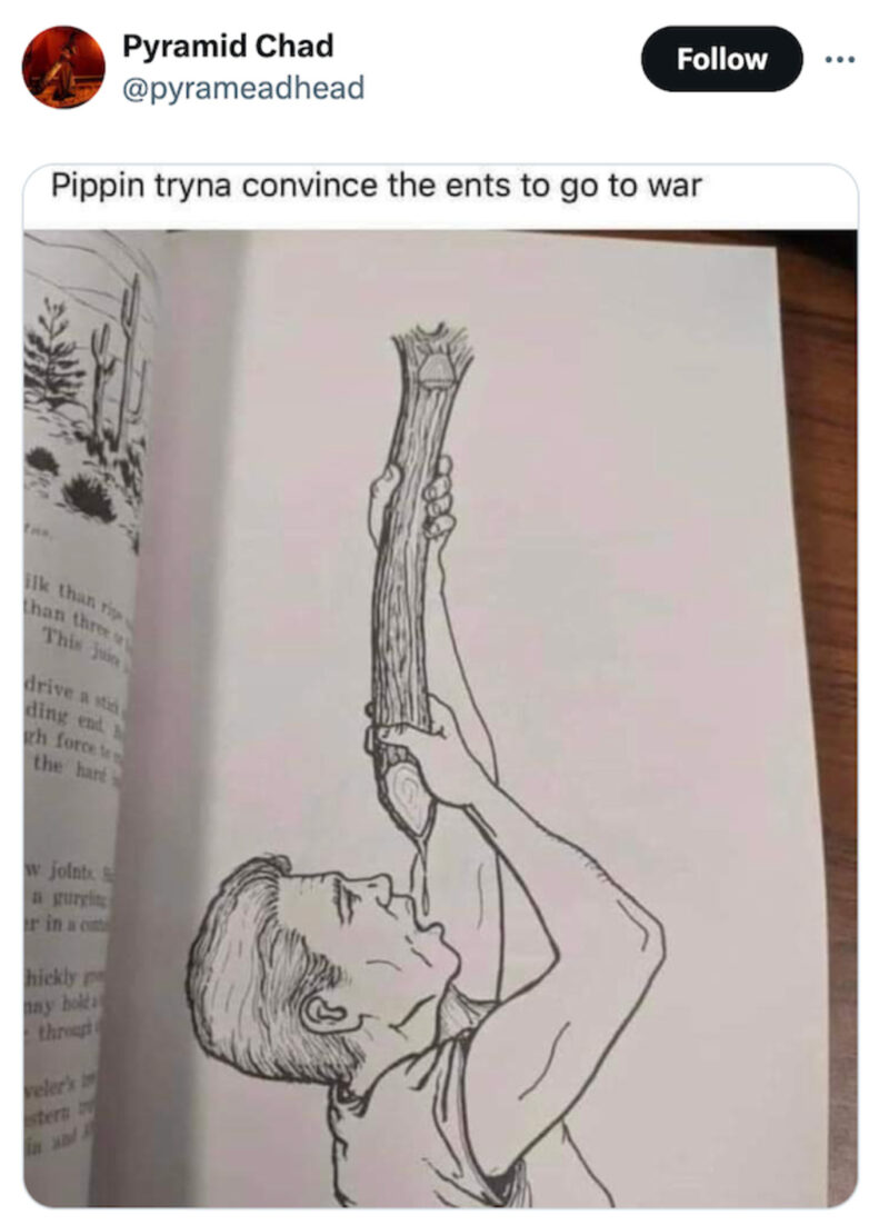 “Pippin tryna convince the ents to go to war.”