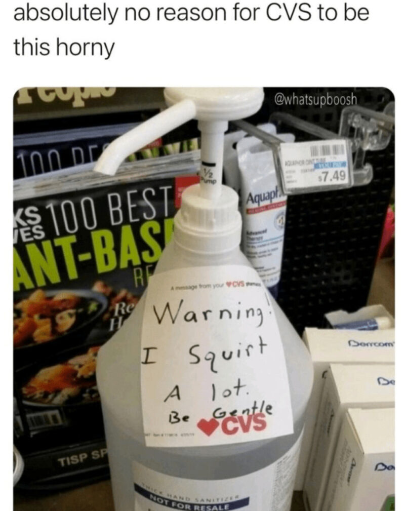 “Absolutely no reason for CVS to be this horny. Warning: I squirt a lot. Be gentle.”