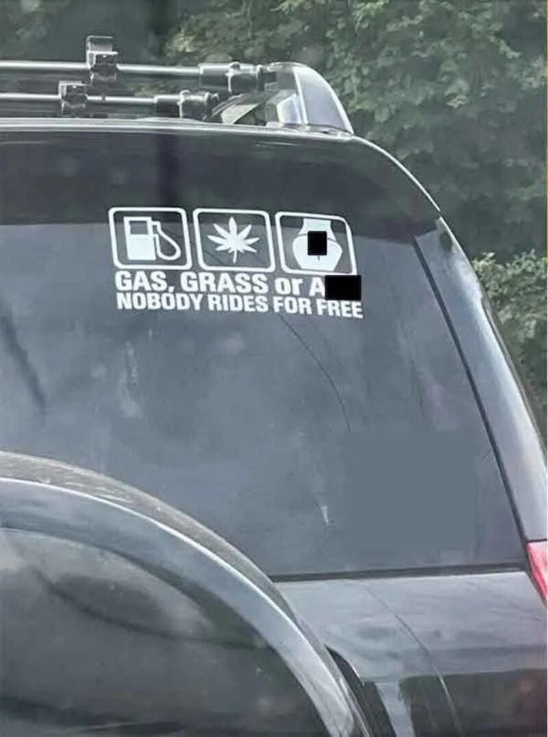 “Gas, grass, or a**. Nobody rides for free.”
