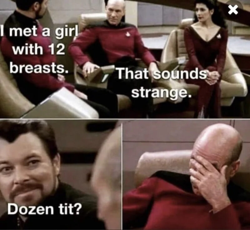 “I met a girl with 12 breasts. That sounds strange. Dozen tit?”