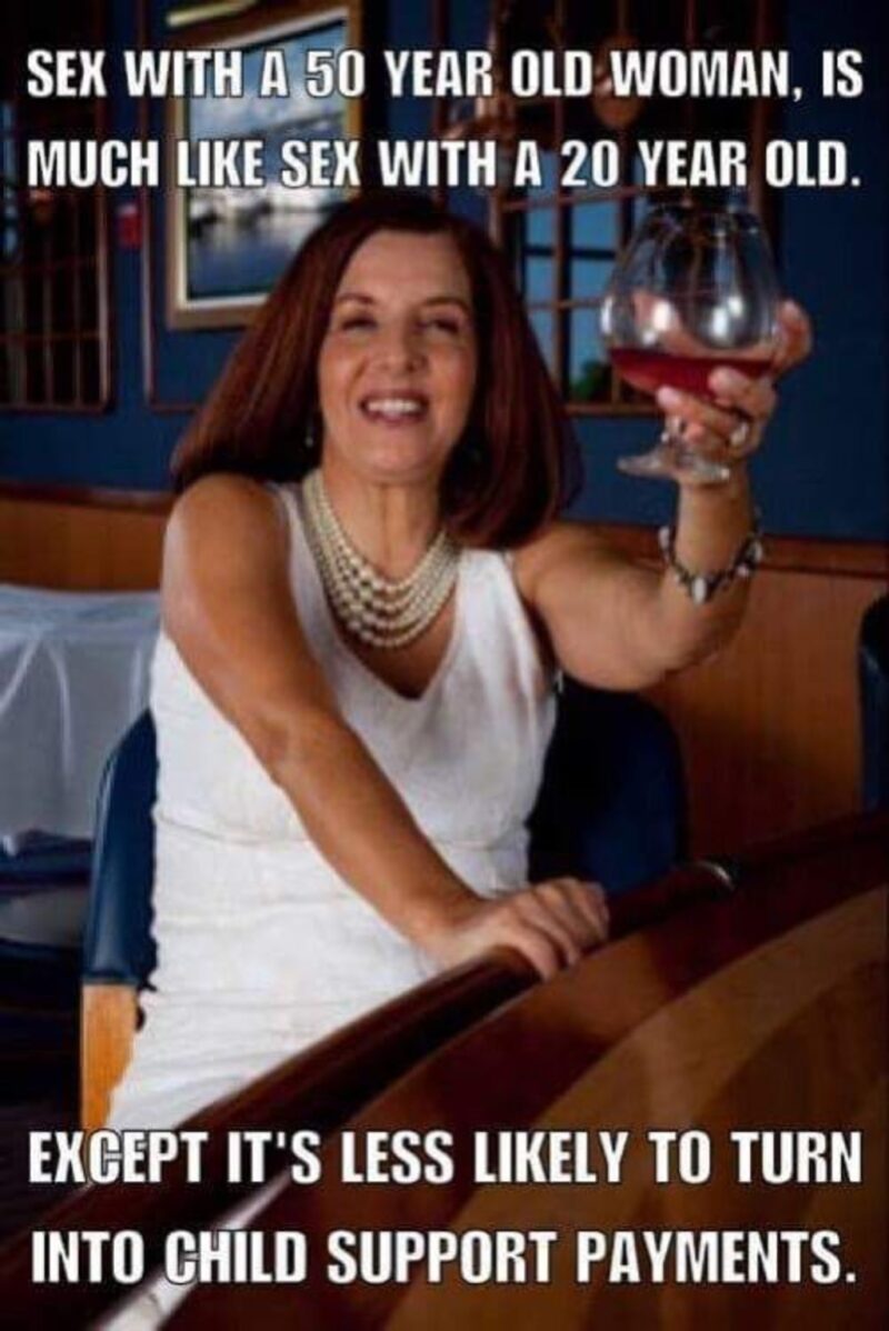 “Sex with a 50-year-old woman is much like sex with a 20-year-old. Except it’s less likely to turn into child support payments.”