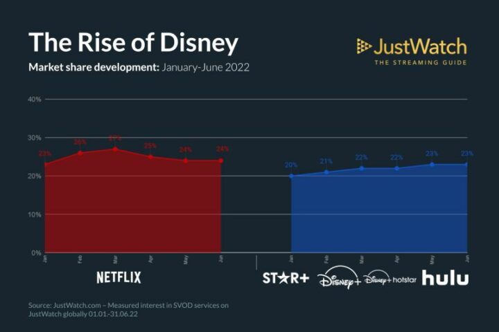 Interestingly, data from JustWatch shows that Disney’s rise to the top has been mirrored by a corresponding decline in Netflix’s market share. In March, Netflix held 27% of the market, but by June this had fallen to 24%. This suggests that many viewers are gravitating toward Disney content, and away from Netflix.