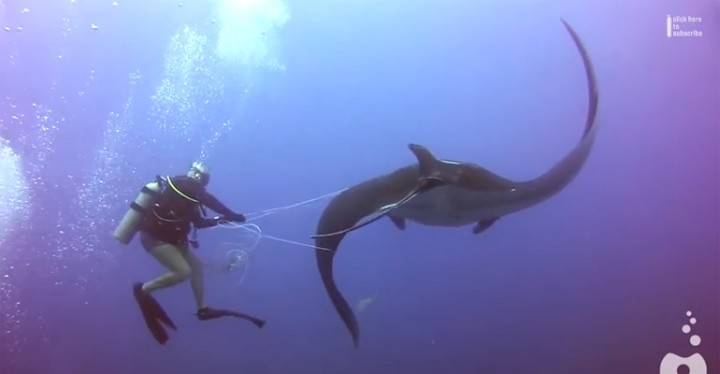 Please share how these divers saved a tangled giant Manta Ray with your friends and family.