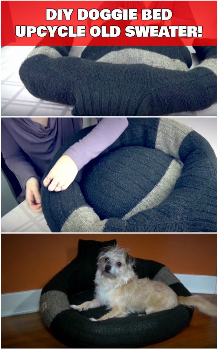 We love our pets and want to make sure they have everything they need to stay happy. Dogs like to nap nearly as much as cats; therefore, having a warm and cozy dog bed to relax in will keep your little pooch happy. If you have an old table, you could always make a dog bed from an old table but did you know that an old sweater could be transformed into the ultimate DIY doggie bed?