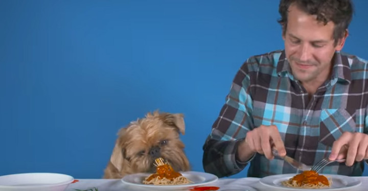 Mashable has created a cute video of humans and their dogs enjoying a delightful spaghetti meal for two and a delicious almond cake for dessert. They even included a spaghetti recipe and a recipe for an almond cake.