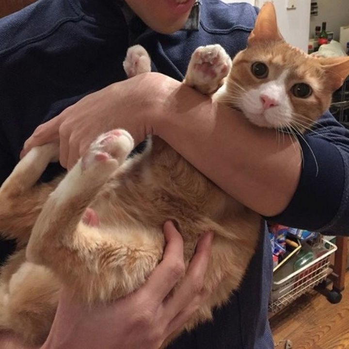 One of these cats will not be part of that statistic because a loving couple, Danny and Hannah, adopted him even when he was labeled ‘unadoptable.’ When the shelter received him, the emaciated cat only weighed 7 pounds and was expected to be around 6-8 years old. Danny and Hannah turned his life around and it will warm your heart.
