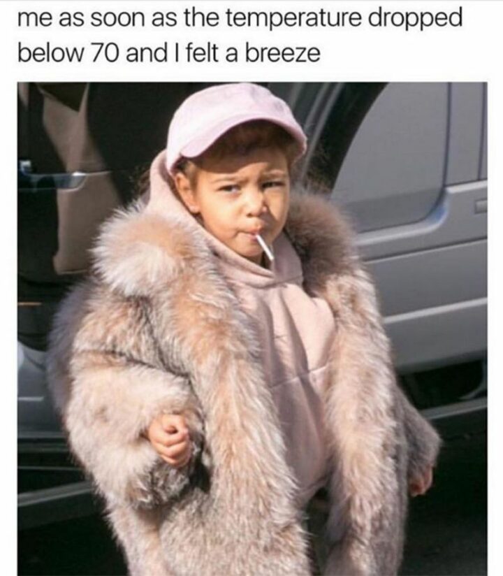 3) “Me as soon as the temperature dropped below 70 and I felt a breeze.”