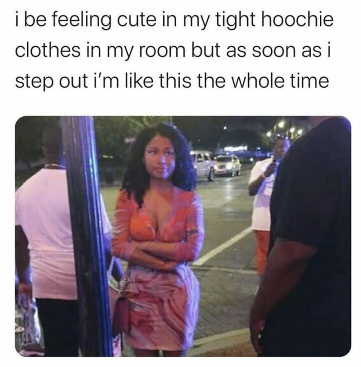 5) “I be feeling cute in my tight hoochie clothes in my room but as soon as I step out I’m like this the whole time.”