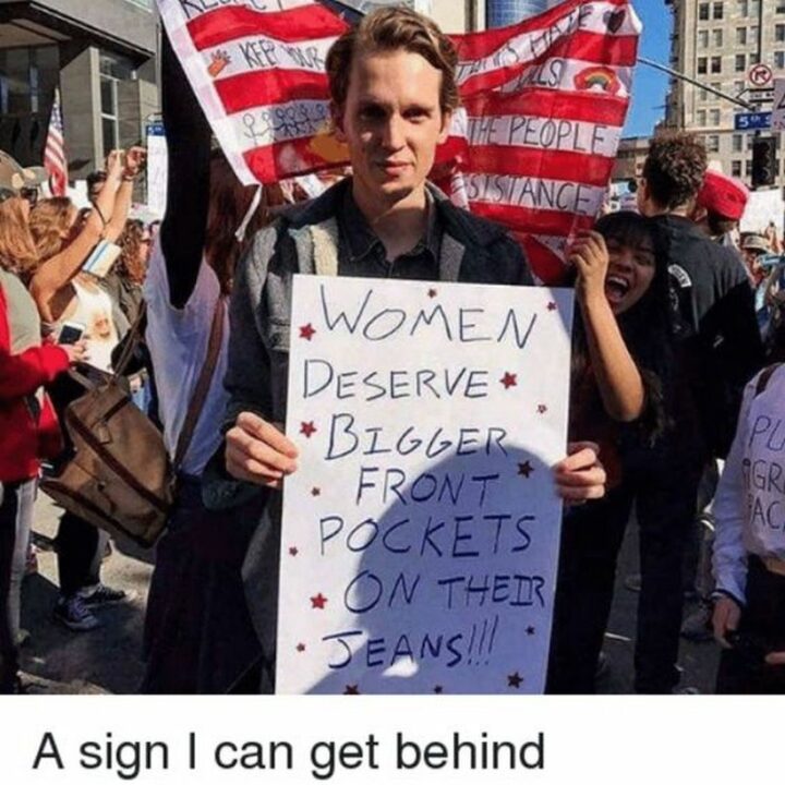 8) “Women deserve bigger front pockets on their jeans! A sign I can get behind.”