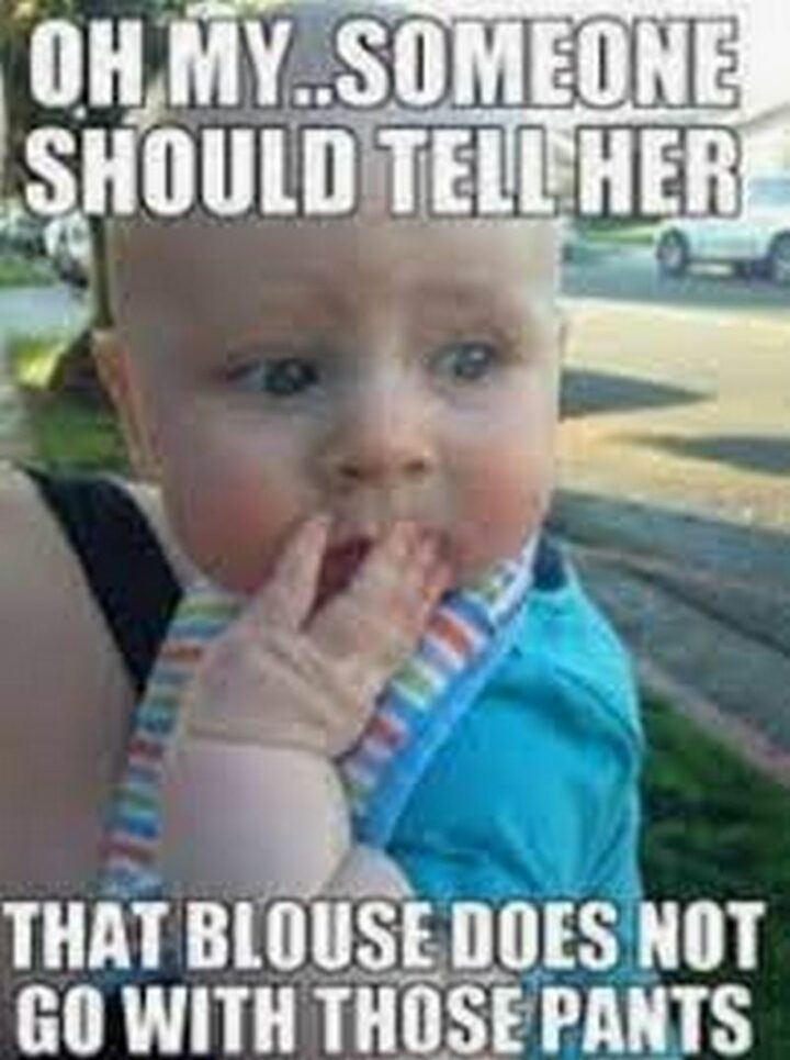 23) “Oh my…Someone should tell her that blouse does not go with those pants.”