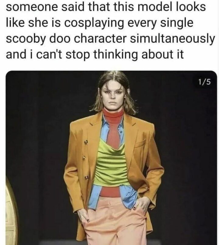 28) “Someone said that this model looks like she is cosplaying every single Scooby-Doo character simultaneously and I can’t stop thinking about it.”