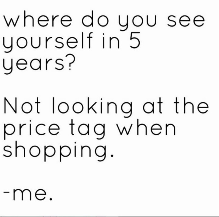 21) “Where do you see yourself in 5 years? Me: Not looking at the price tag when shopping.”