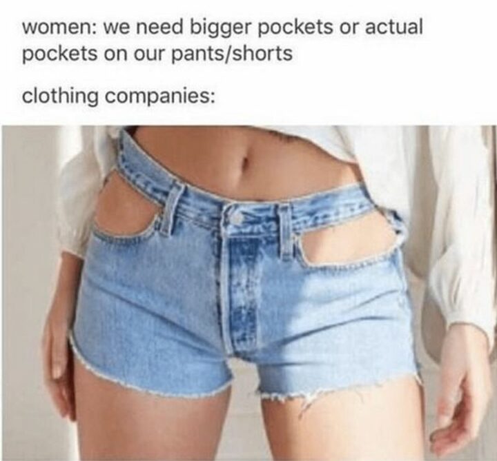 39) “Women: We need bigger pockets or actual pockets on our pants/shorts. Clothing companies:”