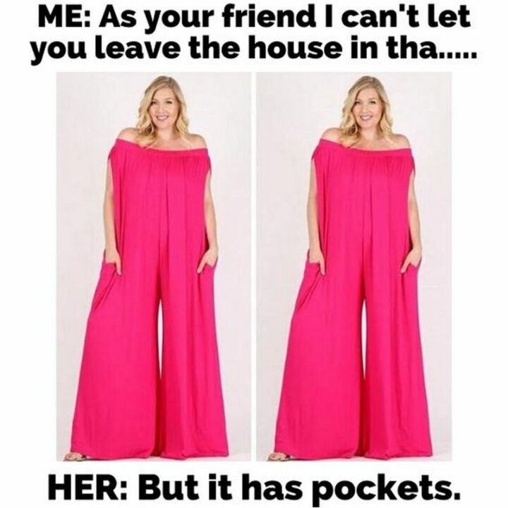 17) “Me: As your friend, I can’t let you leave the house in that…Her: But it has pockets.”