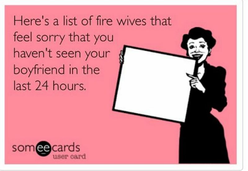 “Here’s a list of firewives who feel sorry that you haven’t seen your boyfriend in the last 24 hours.”