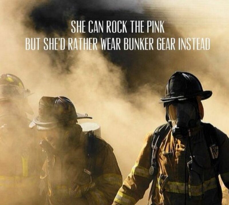 “She can rock the pink but she’d rather wear bunker gear instead.”