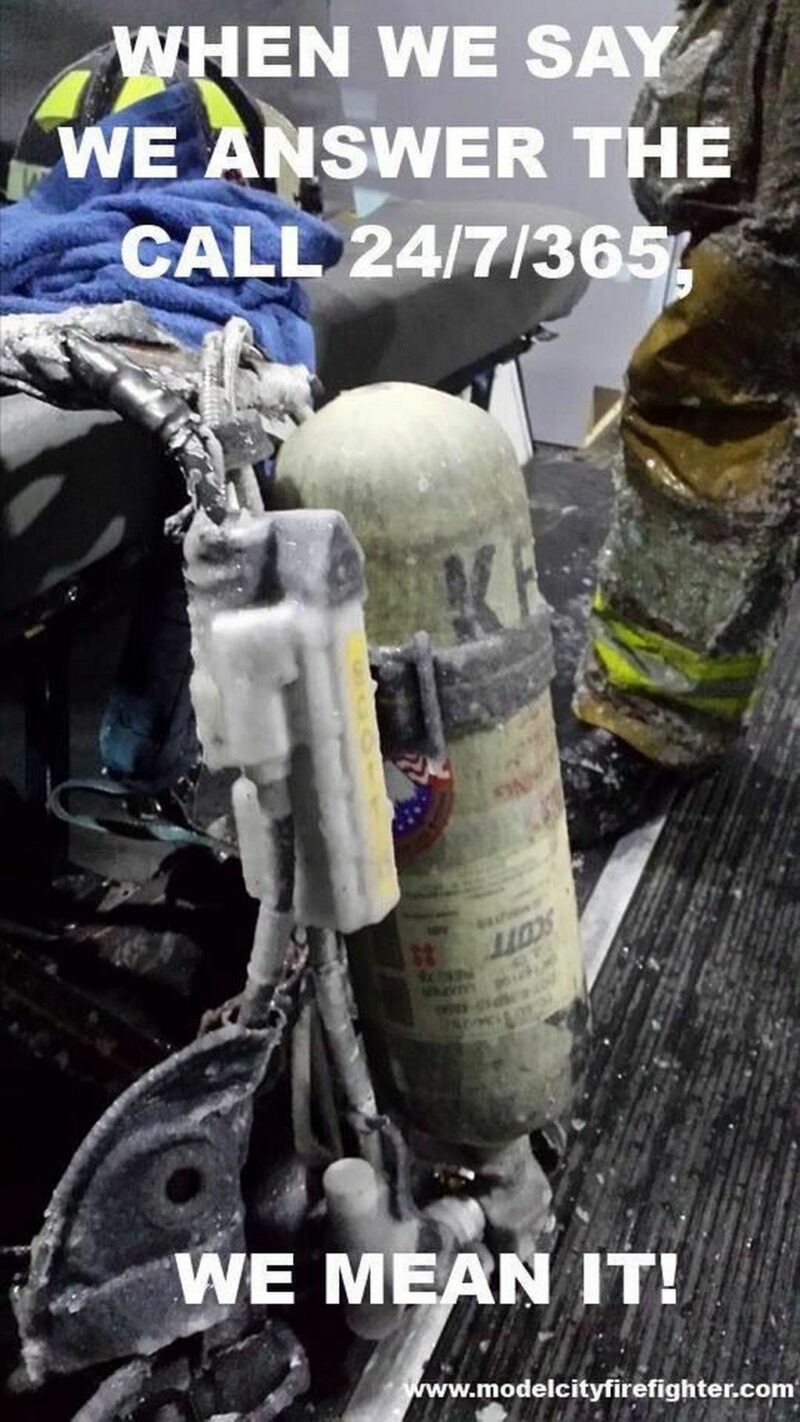 32) When neither rain, nor snow, nor sleet, nor hail will stop firefighters from doing their jobs.
