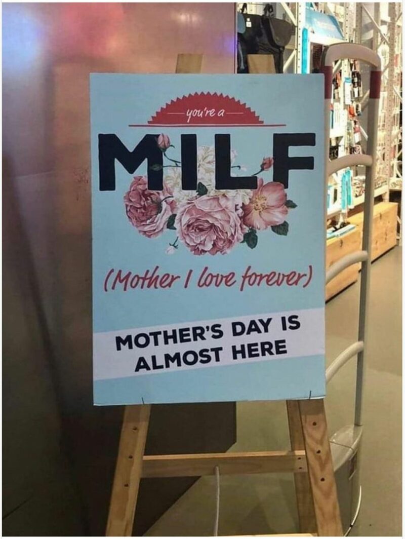 “You’re a MILF (Mother I Love Forever). Mother’s Day is almost here.”