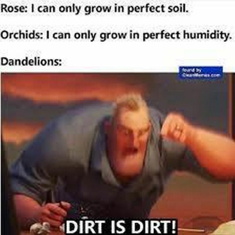 “Rose. I can only grow in perfect soil. Orchids: I can only grow in perfect humidity. Dandelions: Dirt is dirt!”