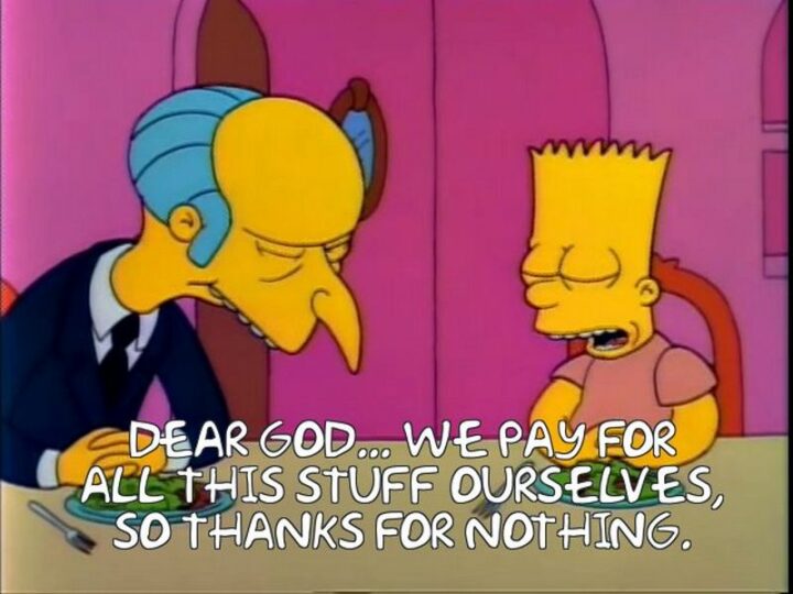 6) “Dear God…We pay for all this stuff ourselves, so thanks for nothing.” – The Simpsons