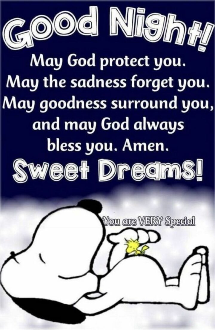 8) “Good night! May God protect you. May the sadness forget you. May goodness surround you, and may God always bless you. Amen. Sweet dreams! You are very special.” – Snoopy