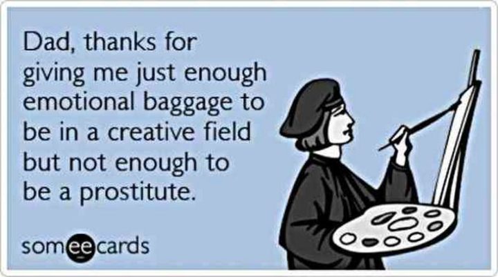 “Dad, thanks for giving me just enough emotional baggage to be in a creative field but not enough to be a prostitute.”