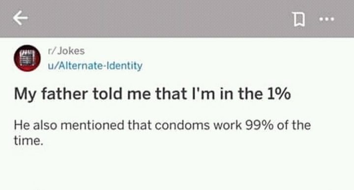 “My father told me that I’m in the 1%. He also mentioned that condoms work 99% of the time.”