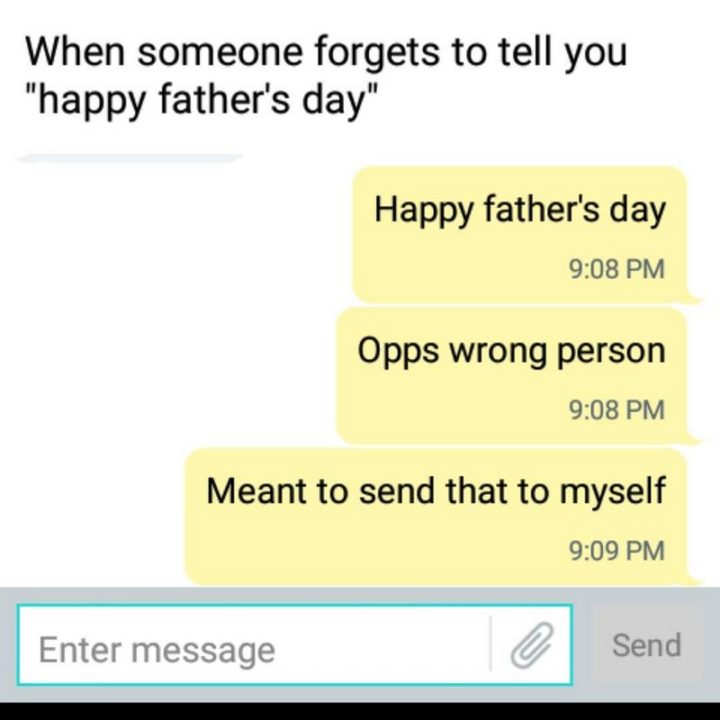“When someone forgets to tell you ‘Happy Father’s Day’. Happy Father’s Day. Oops, the wrong person. Meant to send that to me.”