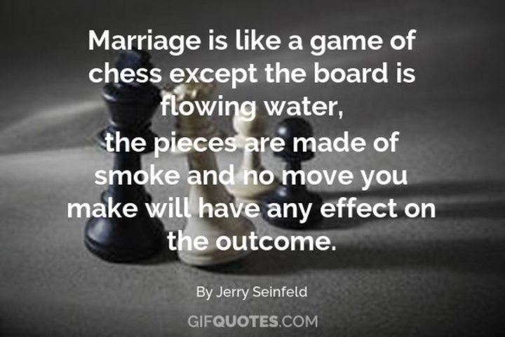 “Marriage is like a game of chess. Except the board is flowing water, the pieces are made of smoke and no move you make will have any effect on the outcome.” – Jerry Seinfeld