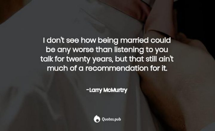 “I don’t see how being married could be any worse than listening to you talk for twenty years, but that still ain’t much of a recommendation for it.” – Larry McMurtry