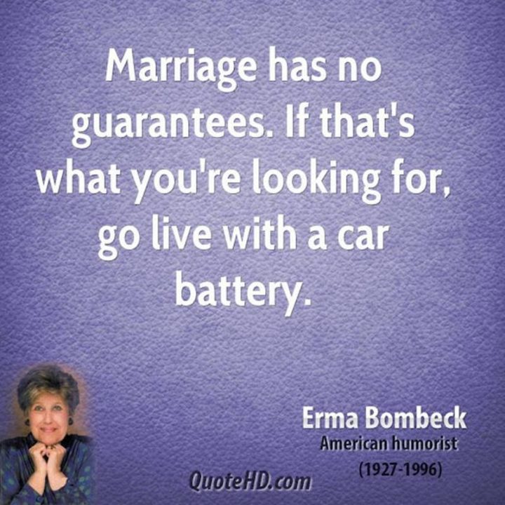 “Marriage has no guarantees. If that’s what you’re looking for, go live with a car battery.” – Erma Bombeck
