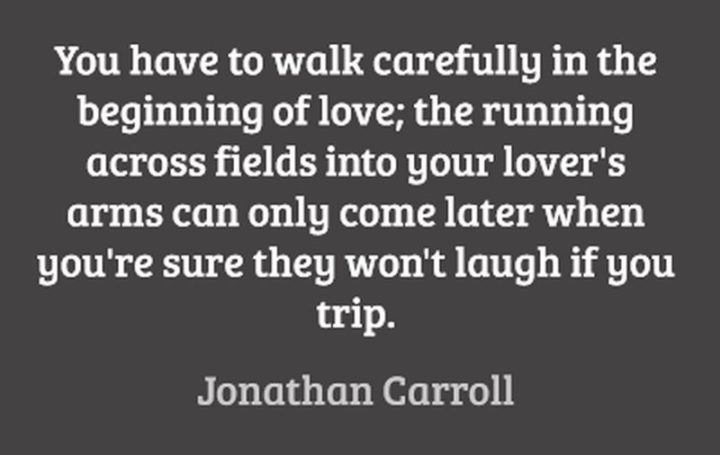 “You have to walk carefully at the beginning of love; the running across fields into your lover’s arms can only come later when you’re sure they won’t laugh if you trip.” – Jonathan Carroll