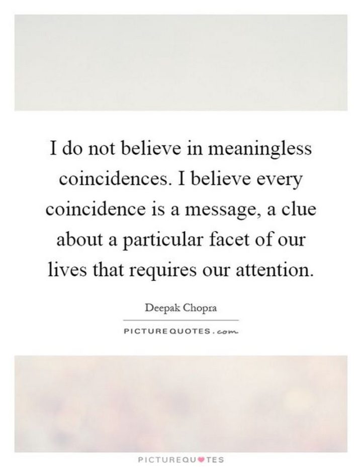 “I do not believe in meaningless coincidences. I believe every coincidence is a message, a clue about a particular facet of our lives that requires our attention.” – Deepak Chopra