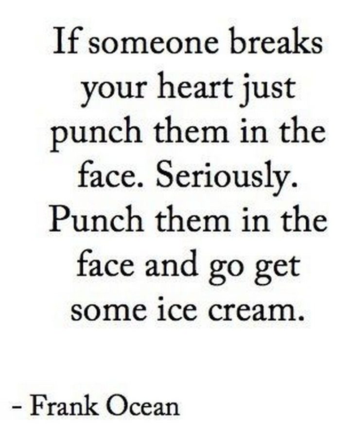 “If someone breaks your heart just punch them in the face. Seriously. Punch them in the face and go get some ice cream.” – Frank Ocean