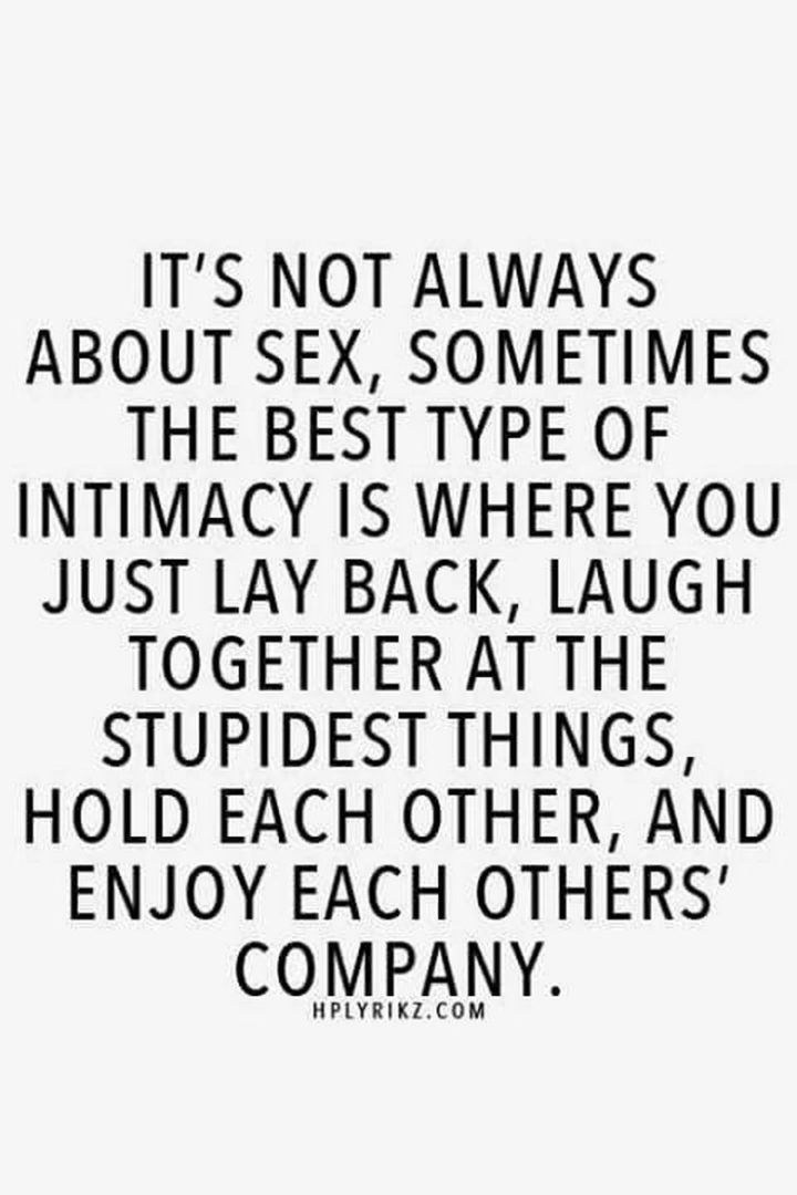 “It’s not always about sex, sometimes the best type of intimacy is where you just lay back, laugh together at the stupidest things, hold each other, and enjoy each others’ company.” – Unknown