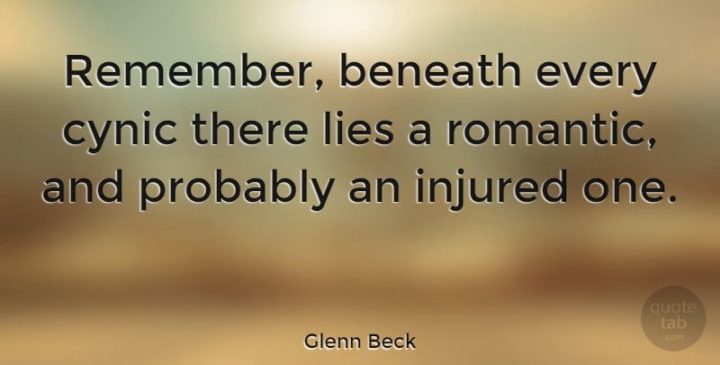 “Remember, beneath every cynic there lies a romantic, and probably an injured one.” – Glenn Beck