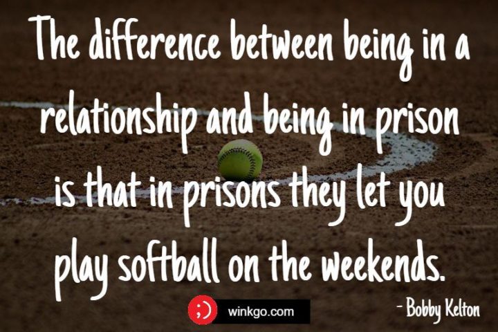 “The difference between being in a relationship and being in prison is that in prisons they let you play softball on the weekends.” – Bobby Kelton