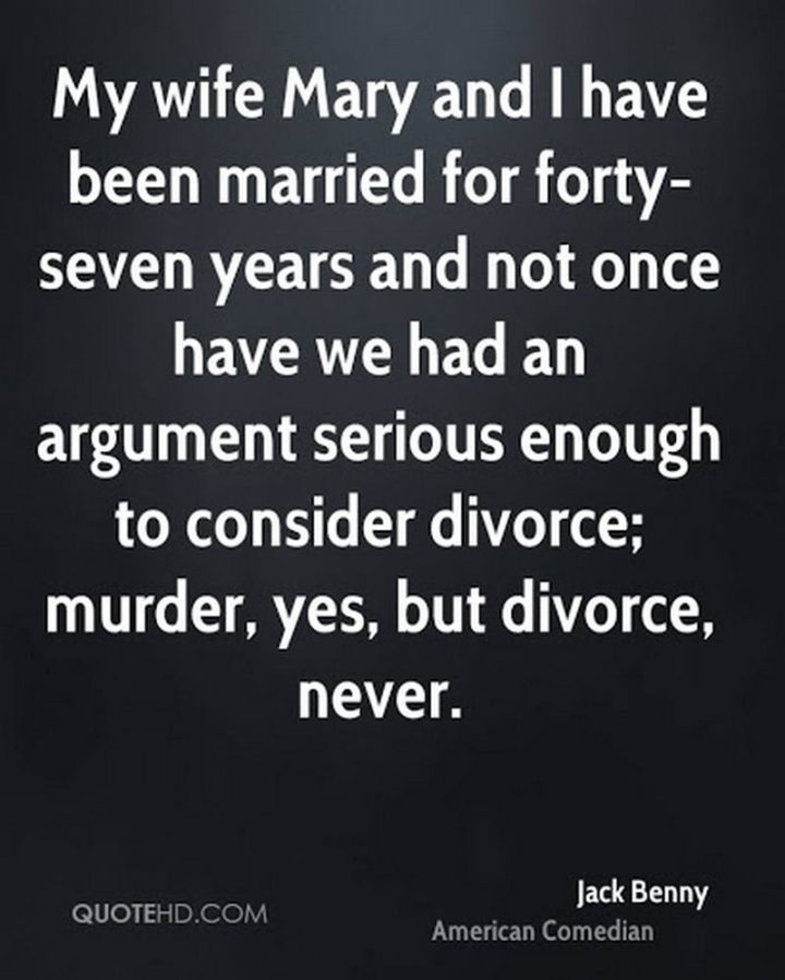 “My wife, Mary, and I have been married for forty-seven years, and not once have we had an argument serious enough to consider divorce; murder, yes, but divorce, never.” – Jack Benny